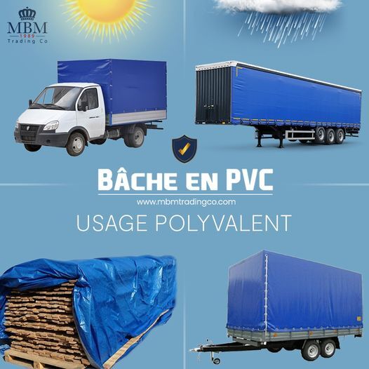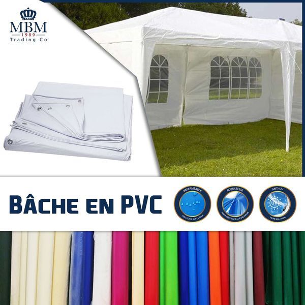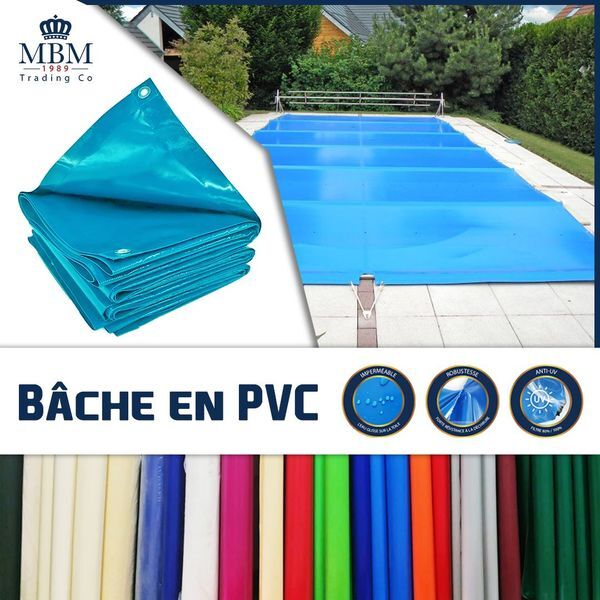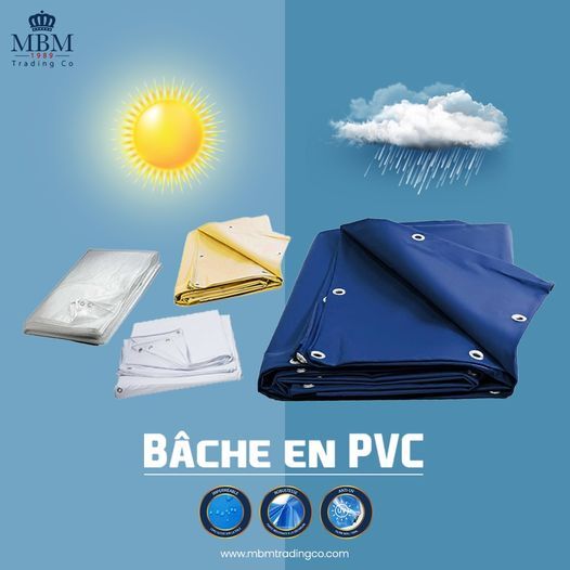 Leader de la vente en gros et au détail, MBM TRADING CO propose une bâche en PVC disponible en plus de 15 couleurs et nuances, facile à entretenir et lavable simplement à l’eau.